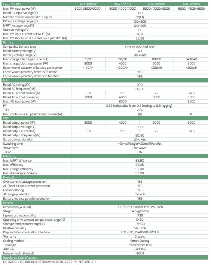 Biến tần 1 pha 6kW LuxPower SNA 6000W sở hữu nhiều ưu điểm vượt trội so với các sản phẩm cùng phân khúc, là lựa chọn lý tưởng cho những ai đang tìm kiếm một giải pháp năng lượng mặt trời đáng tin cậy và hiệu quả:
