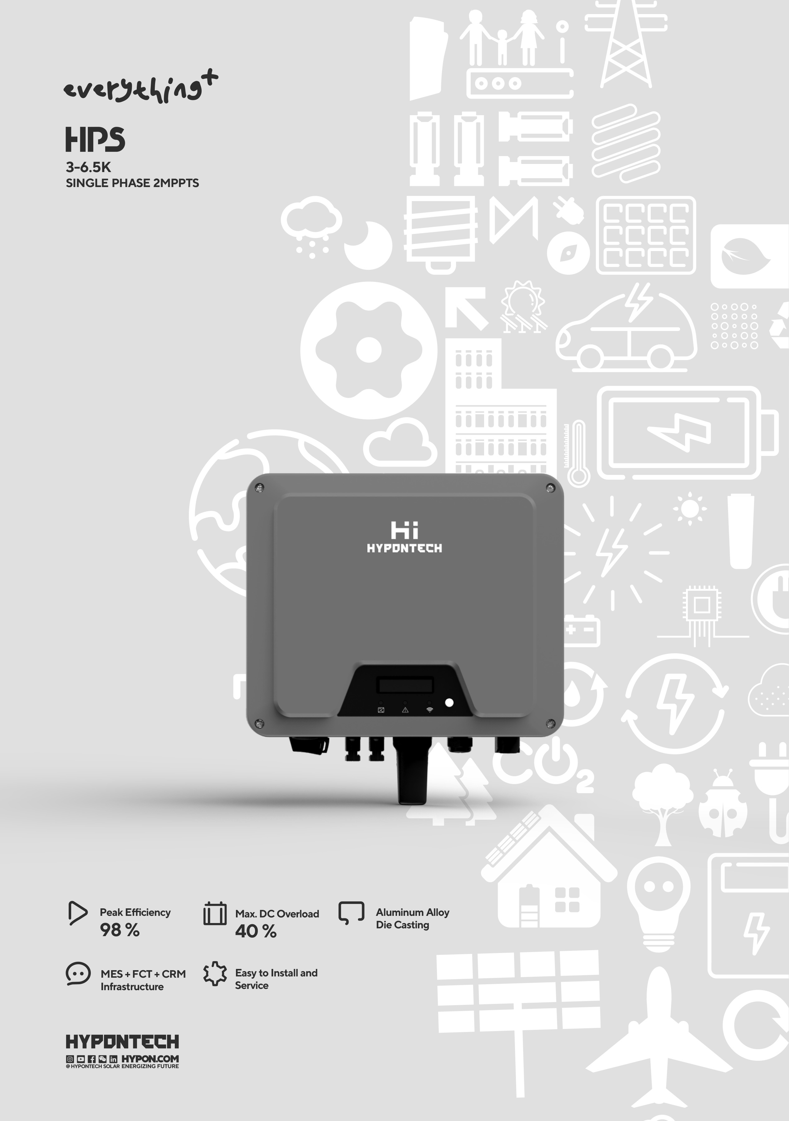 Tổng quan về Biến tần hòa lưới bám tải 1 pha 6.5 kW HYPONTECH HPS-6500