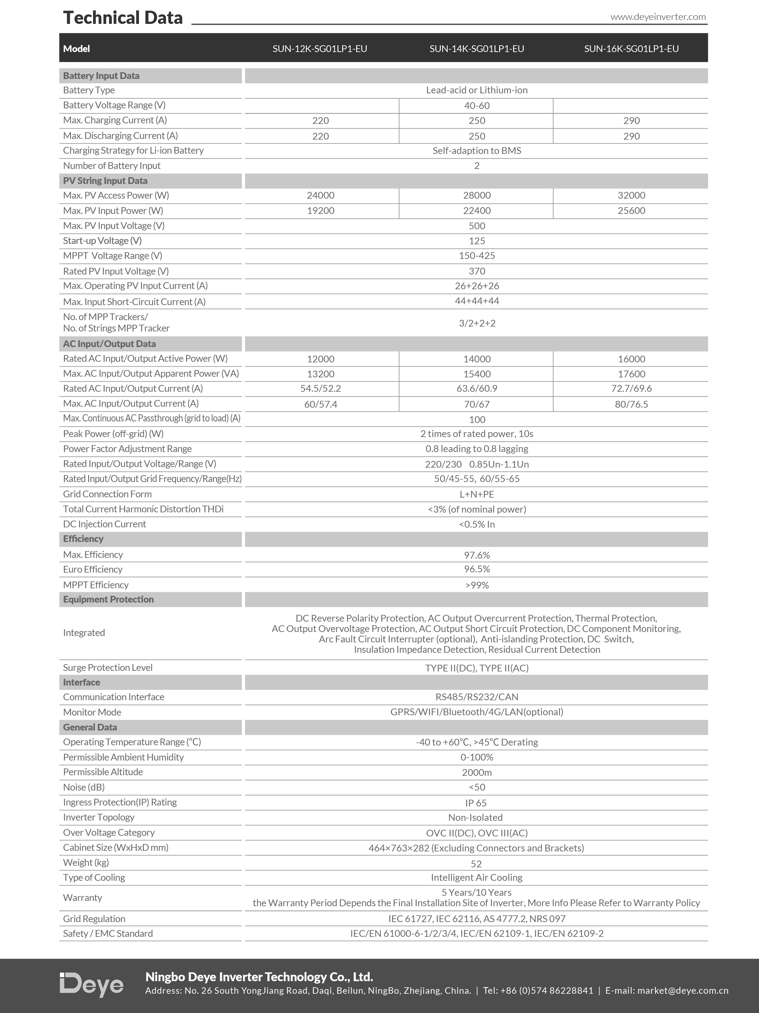 Deye là một thương hiệu dẫn đầu trong ngành công nghiệp biến tần, và SUN-12K-SG01LP1-EU là minh chứng rõ ràng cho cam kết đổi mới và chất lượng của hãng. Biến tần này được trang bị hàng loạt công nghệ tiên tiến, đảm bảo hiệu suất tối ưu và độ bền vượt trội.
