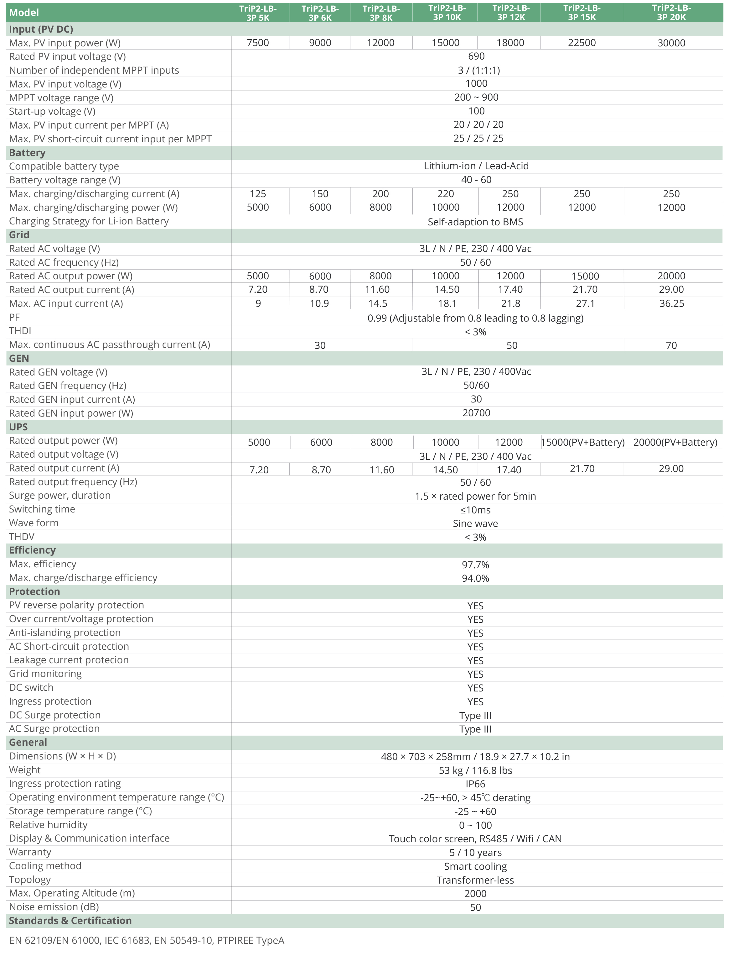 Thương hiệu LuxPower đã khẳng định vị thế của mình trên thị trường năng lượng mặt trời toàn cầu nhờ vào các sản phẩm chất lượng cao, hiệu suất vượt trội và công nghệ tiên tiến. Biến tần TriP2-LB-3P 12K là minh chứng rõ nét cho cam kết này, mang đến một sản phẩm đáng tin cậy, bền bỉ và dễ dàng tích hợp vào mọi hệ thống điện mặt trời 3 pha.