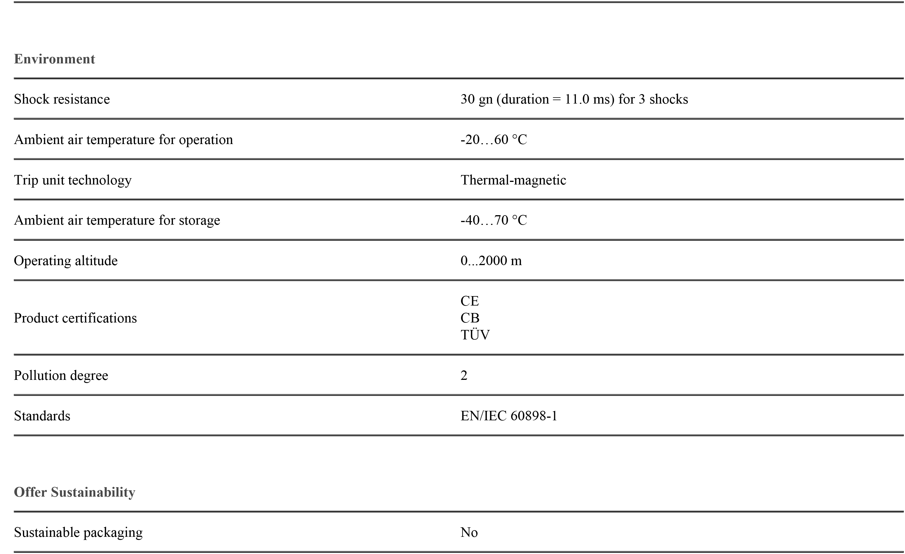 Đặc tính ngắt: loại C (Bảo vệ ngắn mạch theo nguyên tắc từ với dòng điện từ 5 đến 10ln)