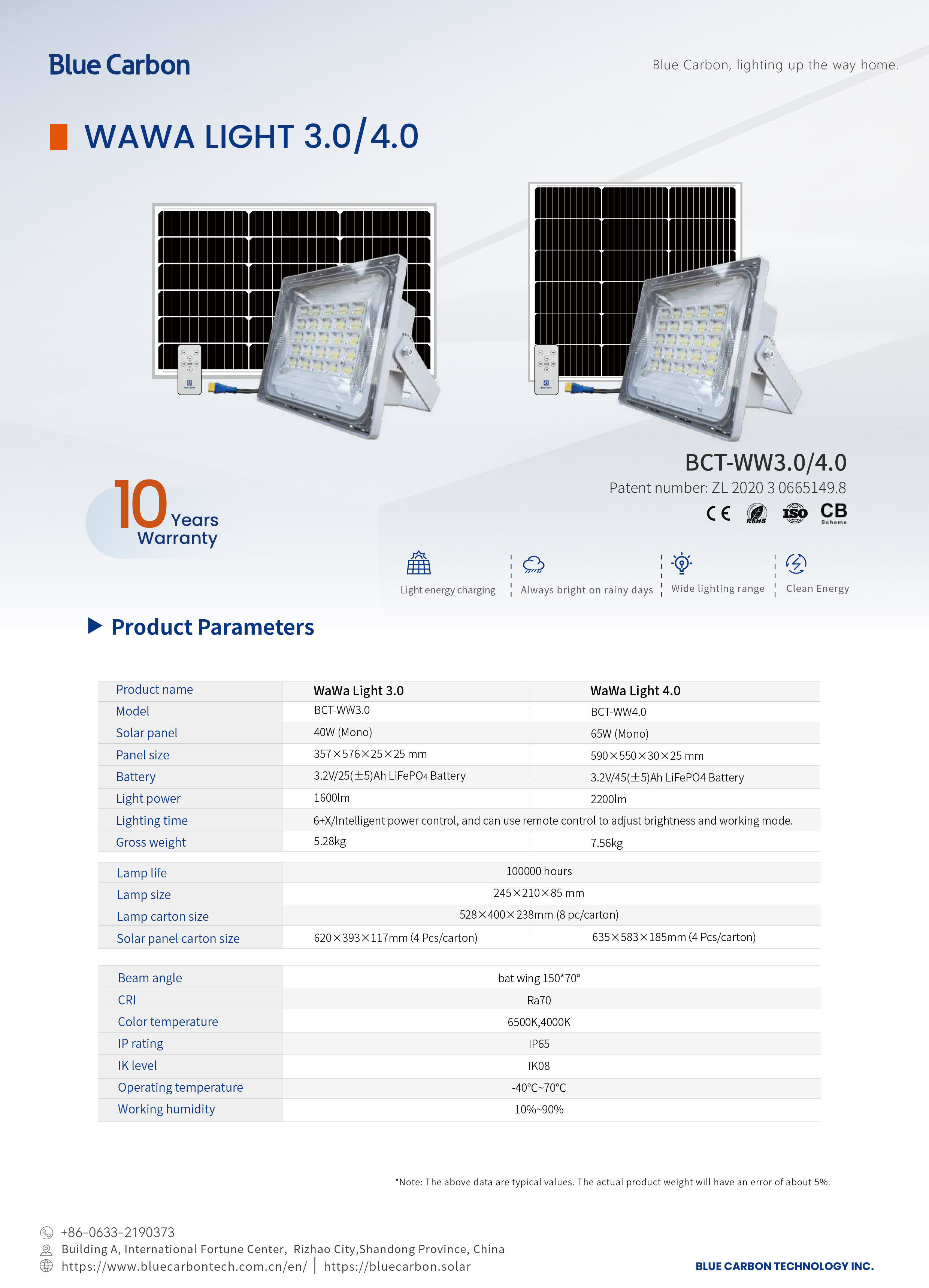 Với công suất 300W và các tính năng thông minh, Đèn năng lượng mặt trời Blue Carbon BCT-WW4.0 phù hợp với nhiều mục đích và môi trường sử dụng khác nhau, mang lại giải pháp chiếu sáng linh hoạt và hiệu quả.