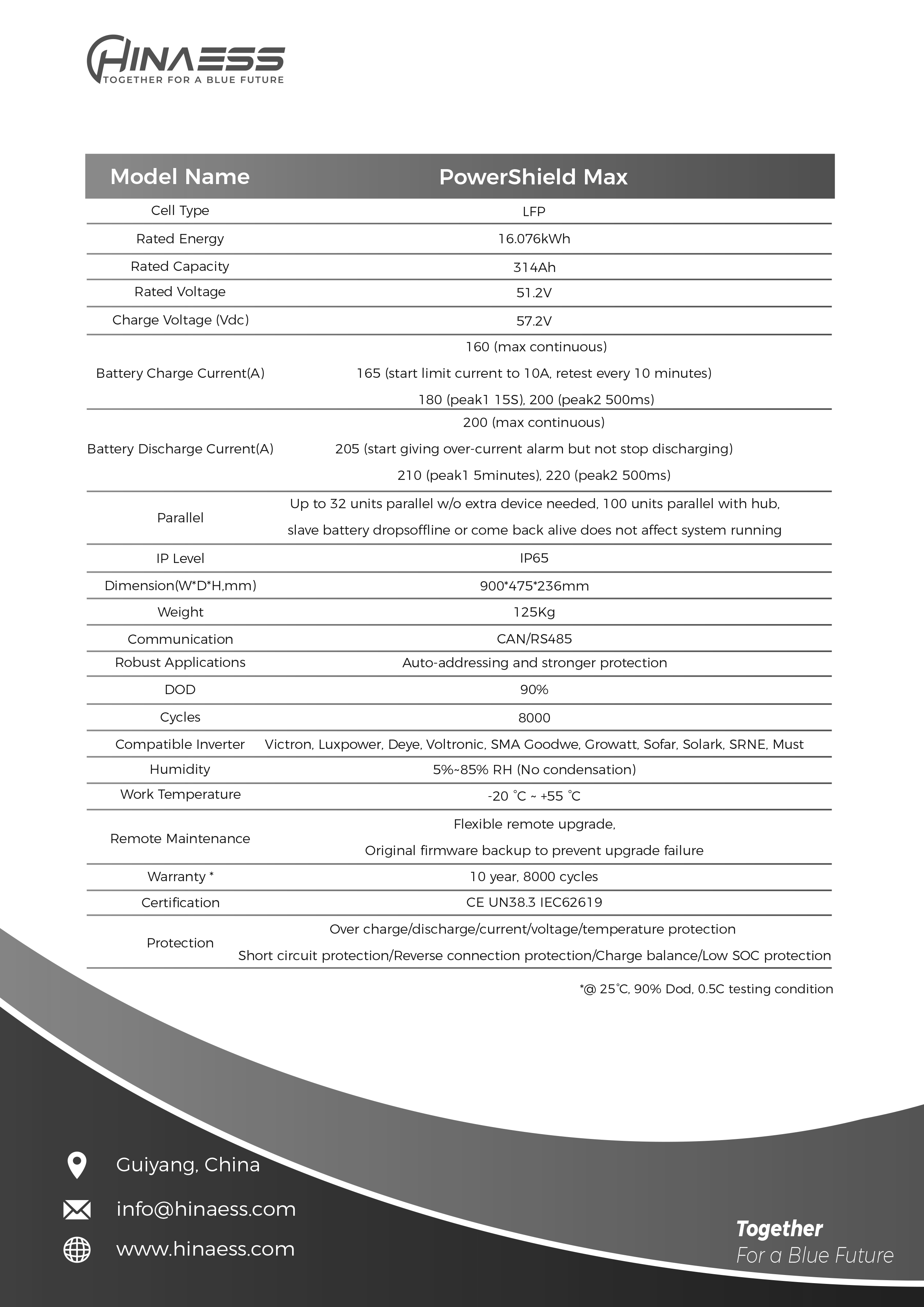 HinaESS 16.076kWh PowerShield Max được chế tạo với công nghệ pin Lithium Ferrous Phosphate (LFP) tiên tiến, nổi tiếng với độ an toàn cao, tuổi thọ dài và khả năng chịu đựng chu kỳ sạc/xả lớn. Điều này có nghĩa là sản phẩm có thể hoạt động hiệu quả trong nhiều năm, giảm thiểu chi phí bảo trì và thay thế. Hiệu suất chuyển đổi năng lượng cao của PowerShield Max đảm bảo rằng phần lớn điện năng được lưu trữ sẽ được cung cấp trở lại hệ thống khi cần thiết, tối đa hóa lợi ích từ hệ thống điện mặt trời. Khả năng vận hành ổn định trong nhiều điều kiện môi trường khác nhau cũng là một điểm cộng lớn, khẳng định độ tin cậy của sản phẩm.